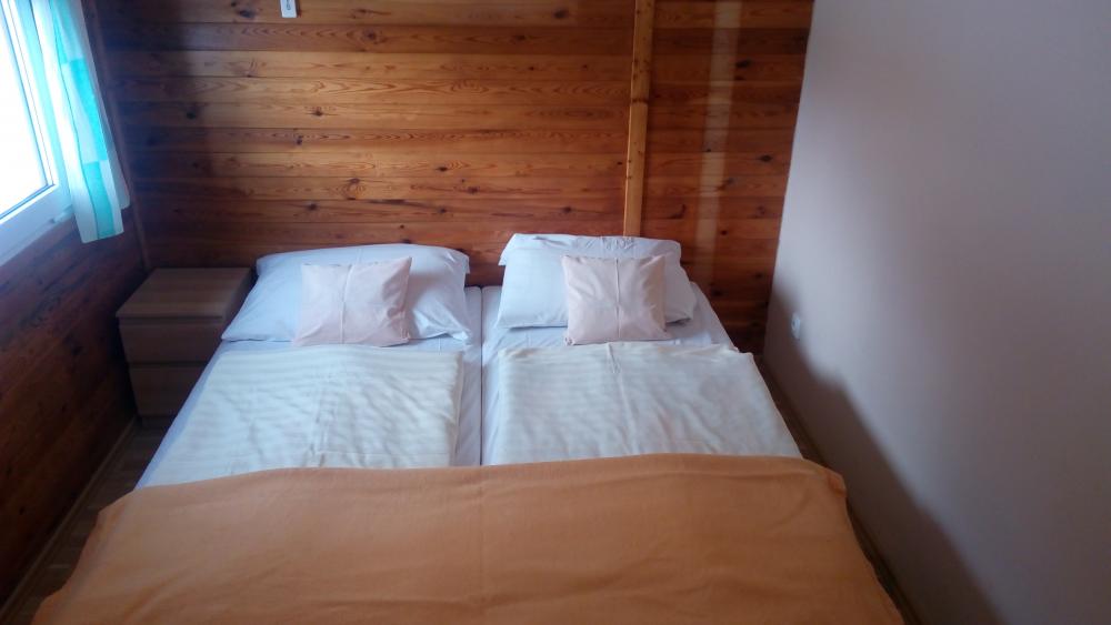 Nově zrekonstruovaný apartmánový domek s dvěmi ložnicemi po 2 lůžkách. Součástí je také místnost se stolem, televizí a lednicí, samostatná koupelna se sprchovým koutem. K dispozici je také venkovní posezení na terase. Domek je celoročně vytápěný elektrickými přímotopy.