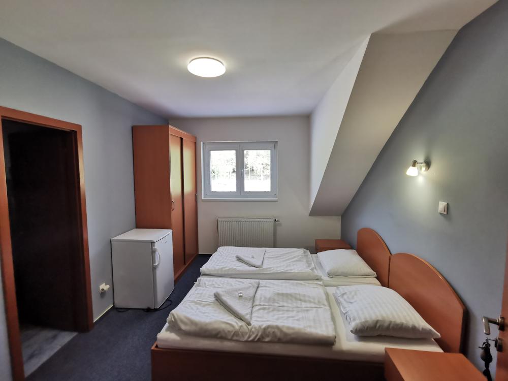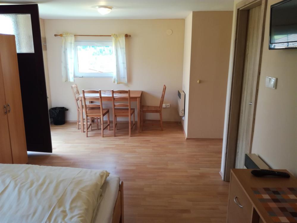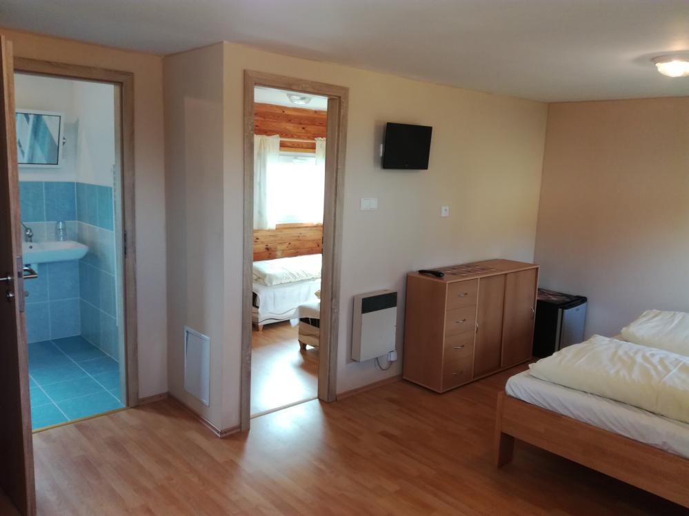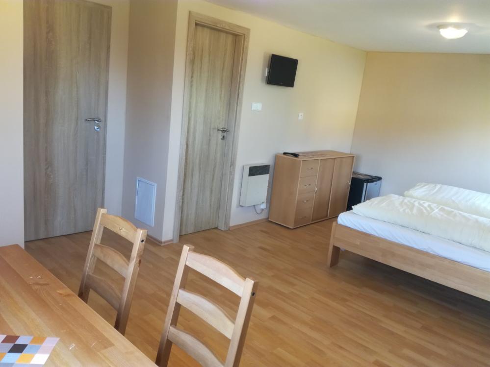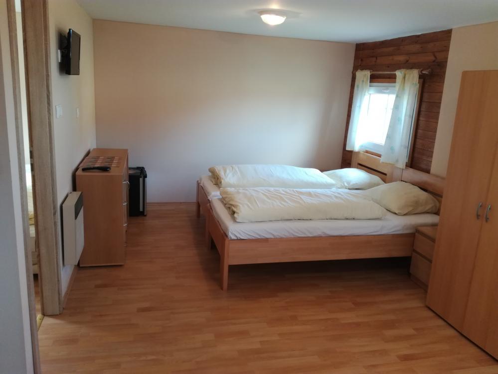 4 bedded hotel rooms, separate between the bedroom, common facilities, fully equipped. Beautiful view of lake and 21 suites okolí.Dále holiday cottages / ARD / has 2 rooms with 2 beds, social Zazen shower, hot water, toilet. Heating heating. Utensils traditional. Sheets. Minibar. Small terasa.Zahradní furniture. Parking cars at the AD. New insulation and facade.